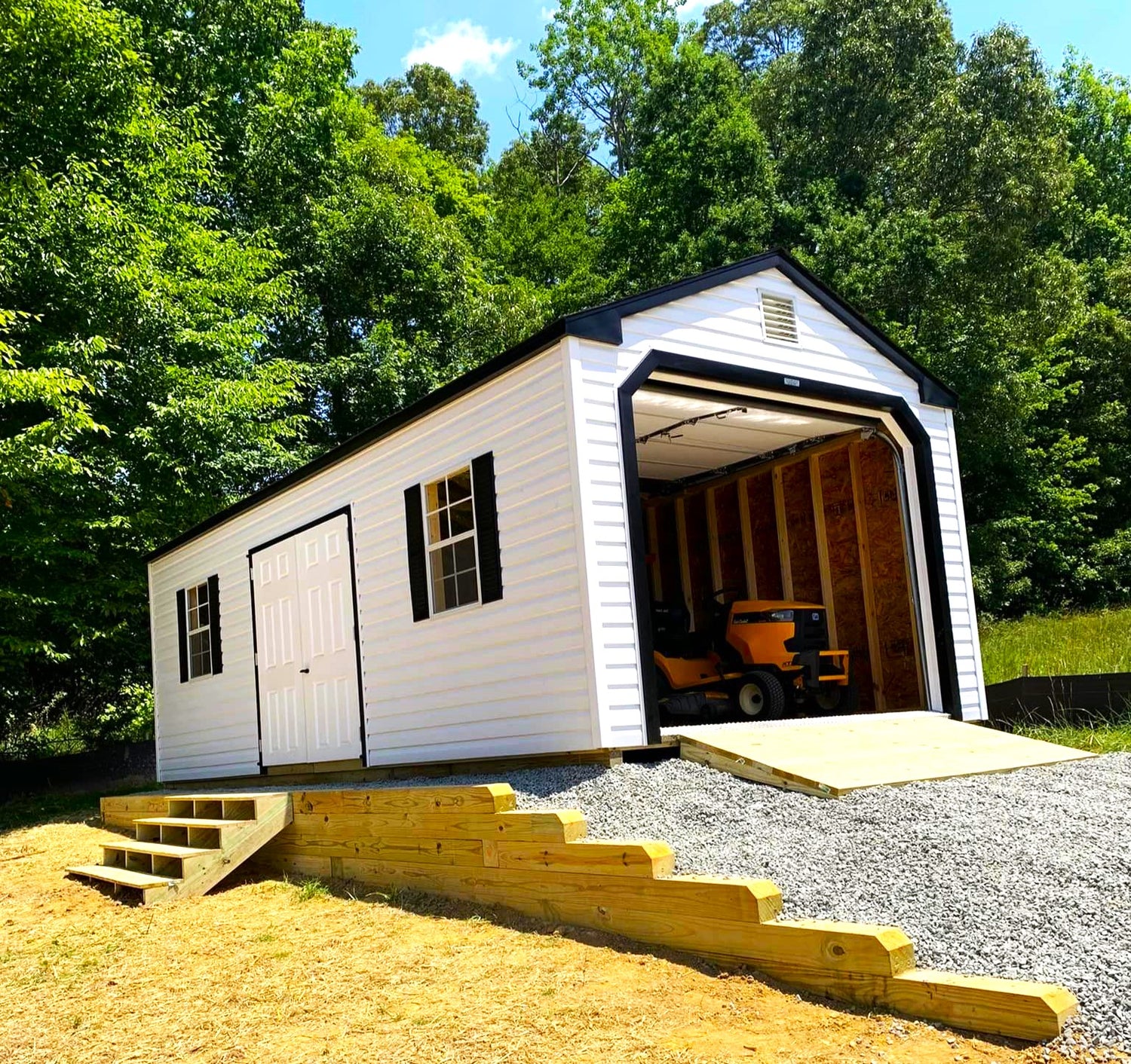 Sized at 11 1/2 x 22ft with a professionally installed 6x6 timber pad. Unlike all those other guys, we handle our site work in house with our very talented crew. Timber pads are always a superior option to protect the integrity of your building. We offer many services to all customers and also offer military and first responders discount!
