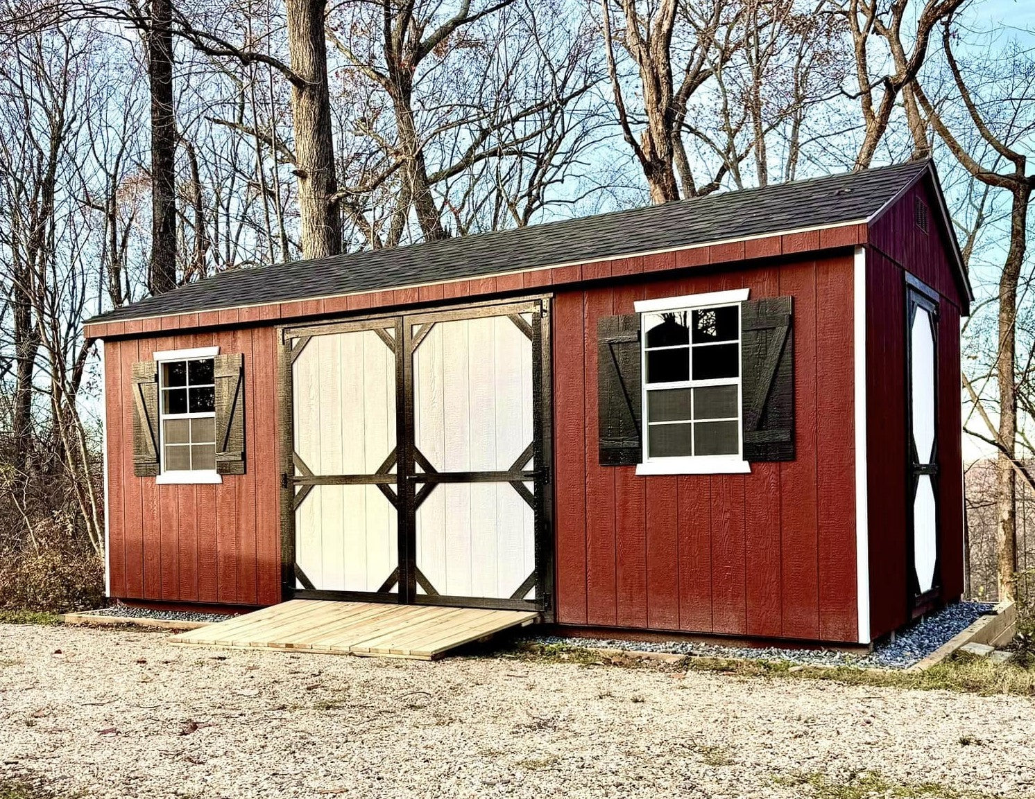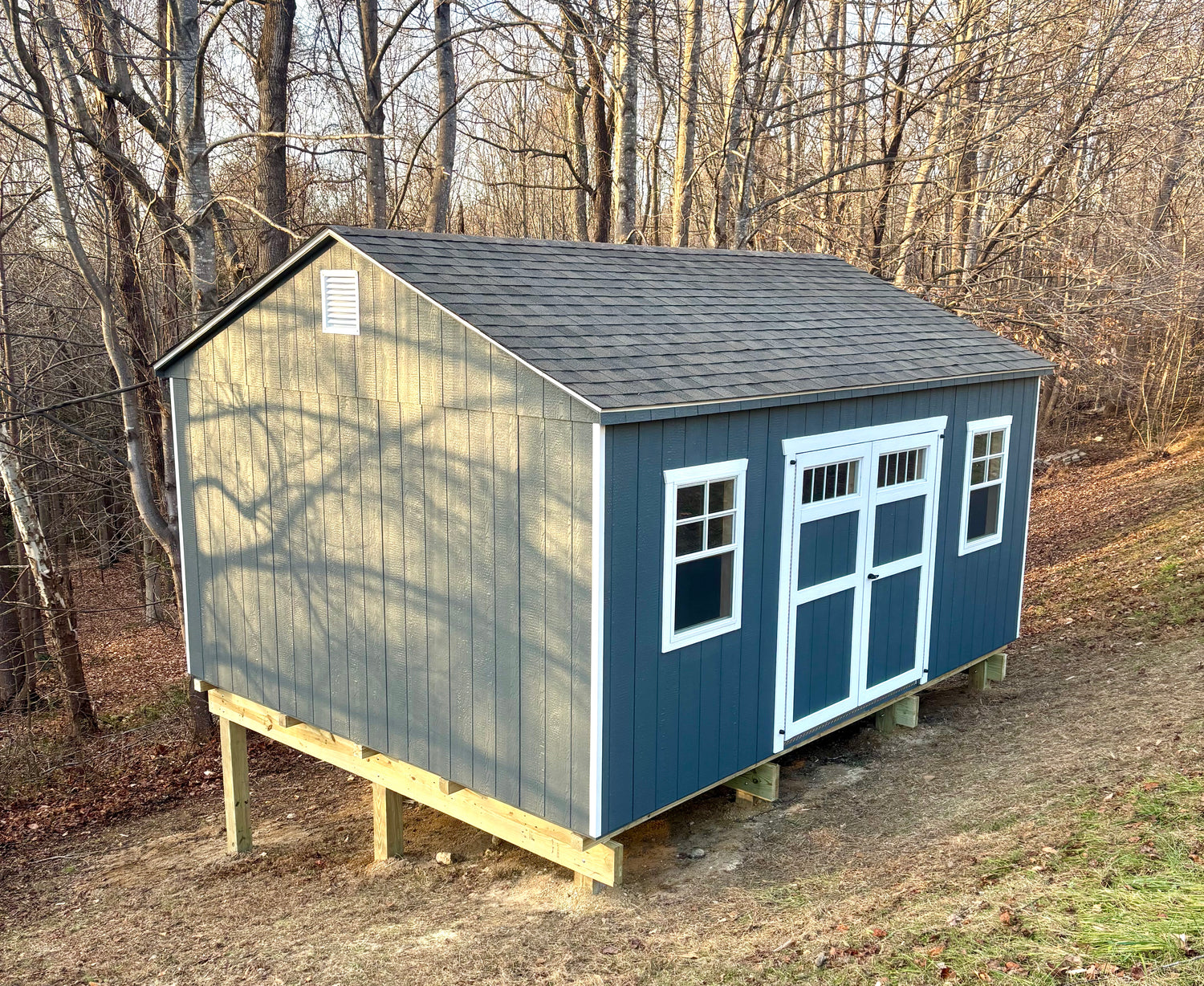 This beautiful shed was delivered in the fall of 2024, with a stable ground pad added by our team.
